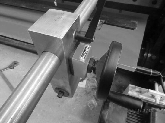 - Задний упор для точного позиционирования заготовки, имеет счётчик длины