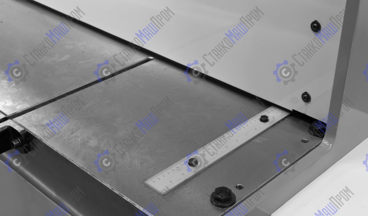 Основное преимущество гидравлических станков в плавности работы и запуска. Любые вибрации при эксплуатации исключены за счет полностью сварной конструкции из высокопрочной стали. В стандартный комплект входит ручной калибровочный задний упор.