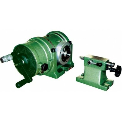 Универсальная делительная головка без дифференциального деления - одно из самых важных приспособлений для фрезерного станка. Её также можно использовать с долбежными, сверлильными, строгальными и шлифовальными станками для выполнения прямого и простого деления. Делительная головка может быть укомплектована планшайбой, которую можно установить на торец шпинделя. Заготовка может быть установлена на планшайбу или в крепление, установленное на планшайбе. Таким образом, фрезерование заготовки становится возможным с 4-х сторон.