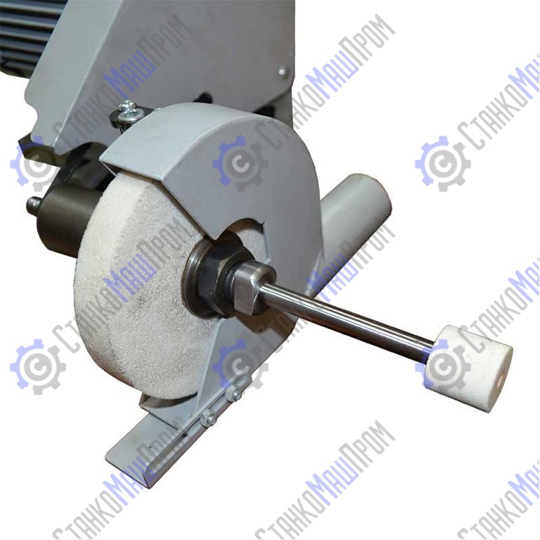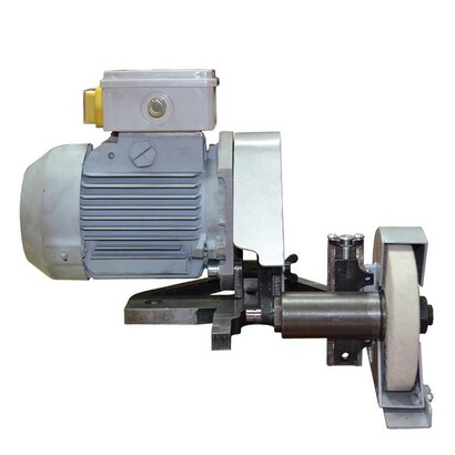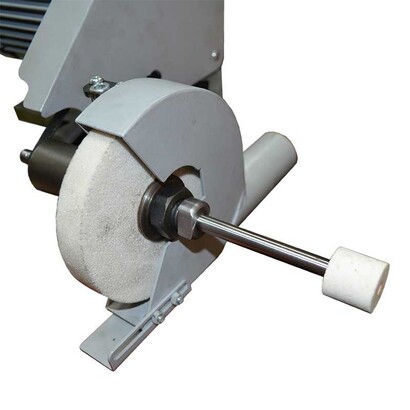 Головка ВГР-100 имеет шпиндель для наружной шлифовки абразивными кругами диаметром 125 мм и посадку для оправки внутренней шлифовки под шарошки диаметром от 8 до 40 мм. Возможность шлифовать рабочие поверхности от 20 мм во внутреннем диаметре (во многом зависит от оправки шлифовального камня) и до 8 мм минимально при наружной шлифовке. Максимальный диаметр наружной шлифовки зависит от габаритов вашего токарного станка, но рекомендуется, из соображений эффективной производительности, не более 250 мм. Кожух шлифовального камня приспособлен для пылеудаления, при наружном шлифовании. Промышленный пылесос приобретается отдельно. Абразивный круг выставляется на уровне оси центров, с помощью регулировочного винта.