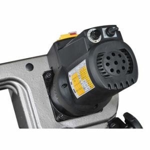 - Плавная регулировка скорости вращения полотна позволит подобрать оптимальный режим резания, а угол поворота пильной рамы на 60 градусов позволит увеличить гамму обрабатываемых изделий