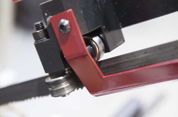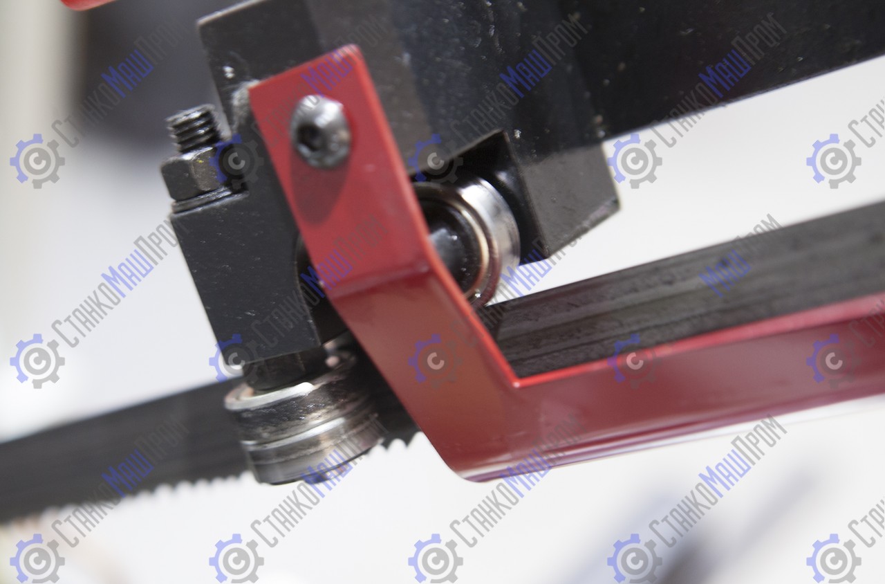 Режущий инструмент – бесконечная сварная ленточная пила. Полотно натягивается с помощью натяжного шкива. Натяжной шкив приводится в движение приводным шкивом, который в свою очередь, приводится через редуктор.