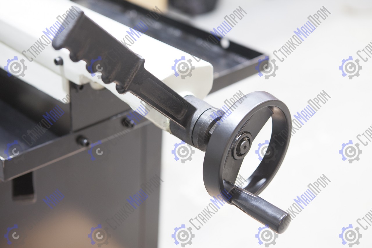![]() | Тиски с ручным зажимом, и рычагом быстрой доводки Маховик ручного натяжения ленты Мерный упор 500 мм |