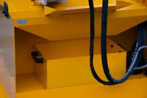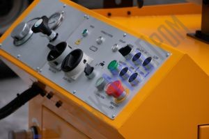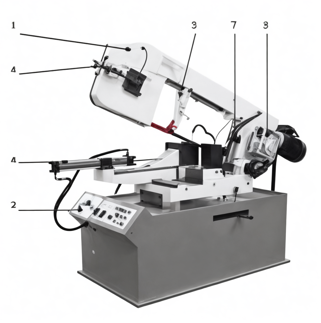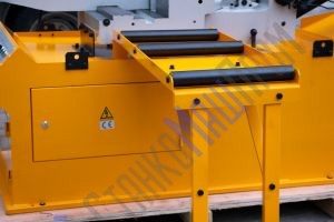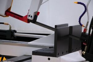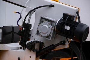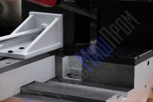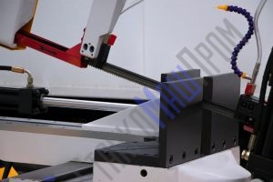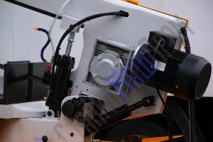 Модель оснащена гидравлическими тисками и гидроприводом с регулировкой подачи пильной рамы на деталь при резке.