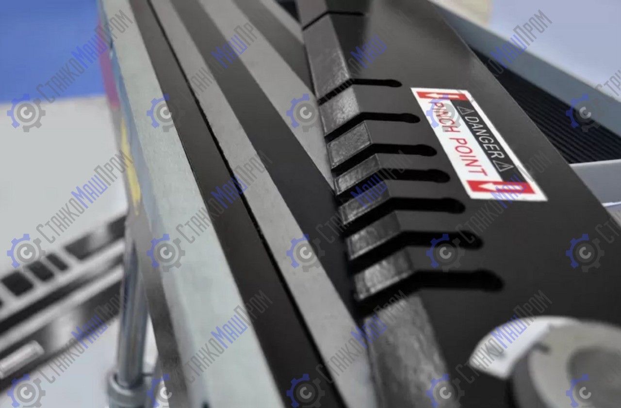 Гибка заготовки осуществляется поворотом гибочной перекладины. Лист металла сгибается вокруг переднего края зажимной балки. В зависимости от длины станка – различна комплектация зажимных перекладин, обеспечивающих широкое применение станка для различных задач. В комплектации возможны 4 вида перекладин – сплошная, сегментная, узкая, прорезная перекладины.
