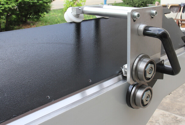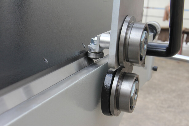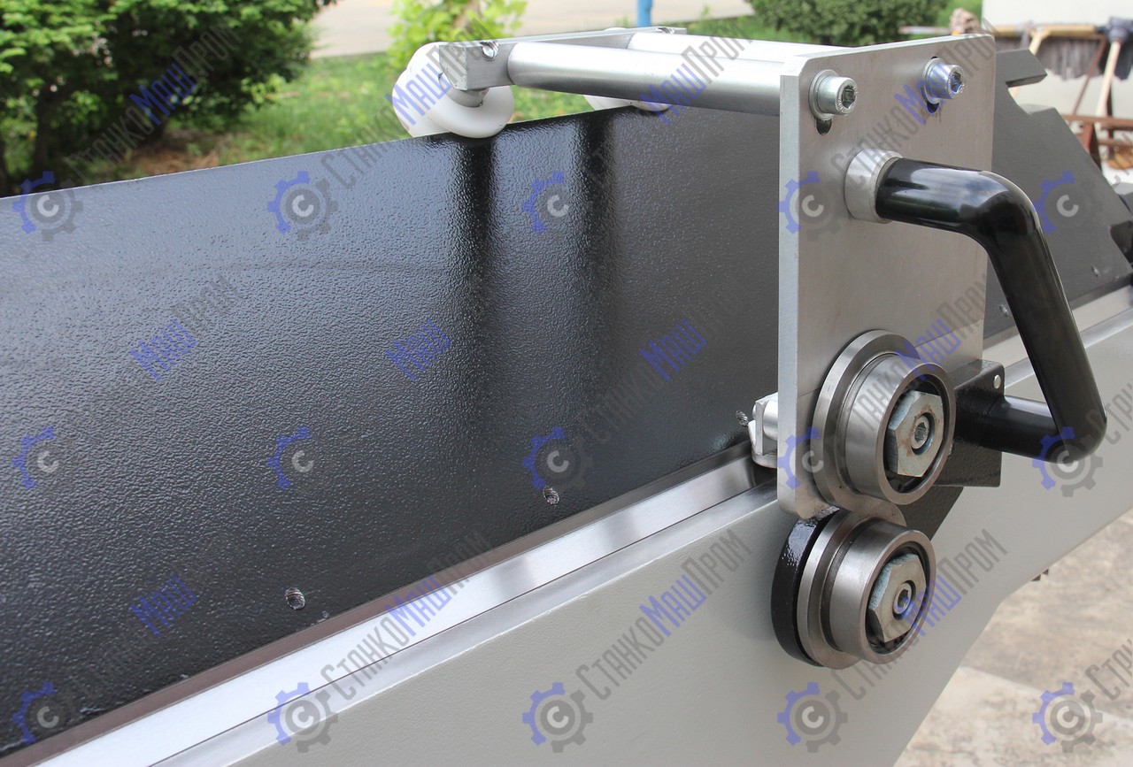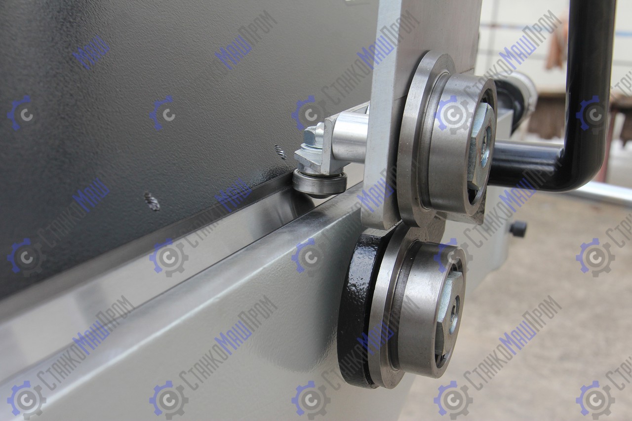 - Направляющий вертикальный узел перемещения прижимной балки, позволяет фиксировать лист с более сильным усилием-прижимом по всей длине станка
