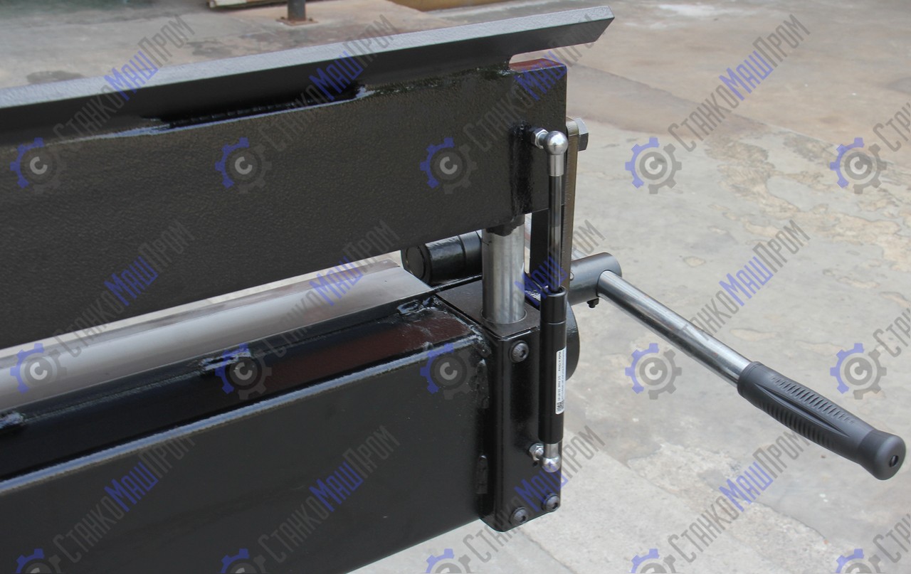 - Направляющий вертикальный узел перемещения прижимной балки, позволяет фиксировать лист с более сильным усилием-прижимом по всей длине станка