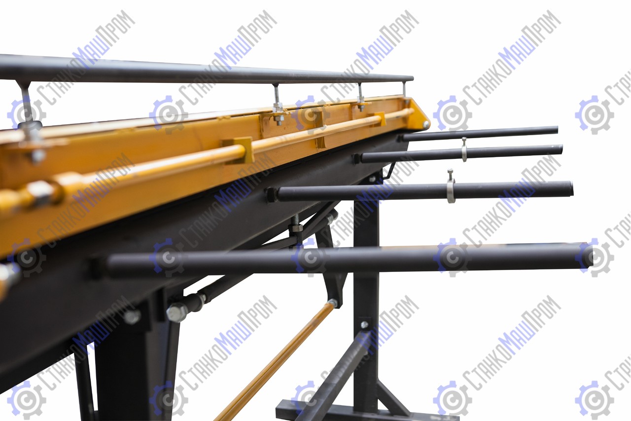 - Надёжная жёсткая конструкция ножной стойки, с параллельным вертикальным расположением ножек станка исключающих дальнейшее провисание балок по краям станка (как в случаях расположения ножек станка под углом/в центр на длинах 2500мм/3000мм)