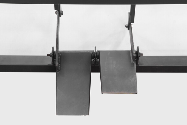 ![]() | Ограничители подачи листа в стандартной комплектации. Прижимная балка оснащена регулировочной тягой, позволяющей в будущем компенсировать прогиб балки в случае необходимости. |