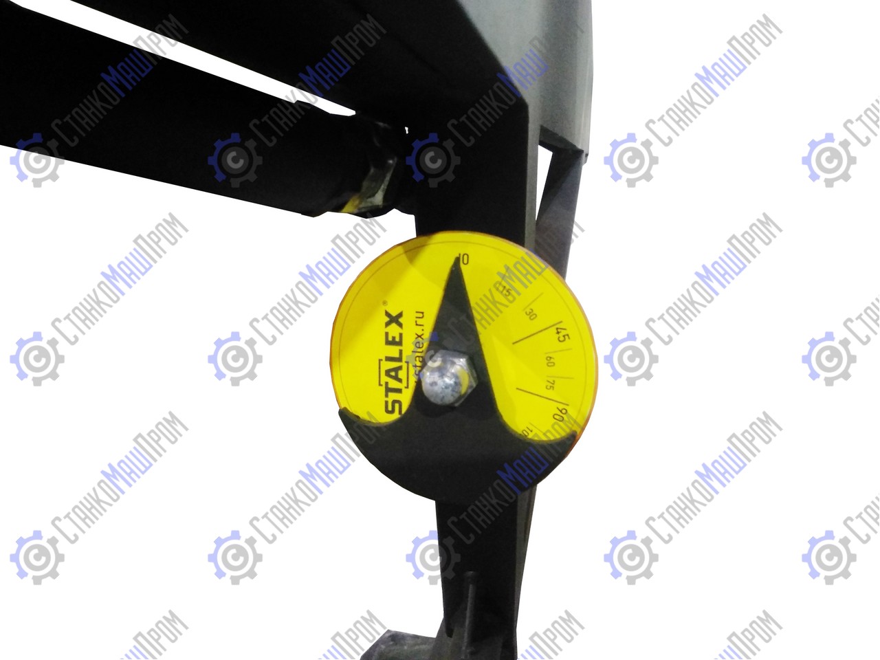 ![]() | По краям станка размещены боковые угломеры с градусной линейкой до 135°. |
