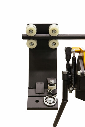 ![]() | Ограничители подачи листа в стандартной комплектации. Прижимная балка оснащена регулировочной тягой, позволяющей в будущем компенсировать прогиб балки в случае необходимости. |