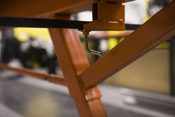 Ход прижима – до 130 мм. Эксцентриковый механизм для точного и надёжного прижима верхней прижимной балки. Стол-подставка для поддержки материала (передняя и задняя).