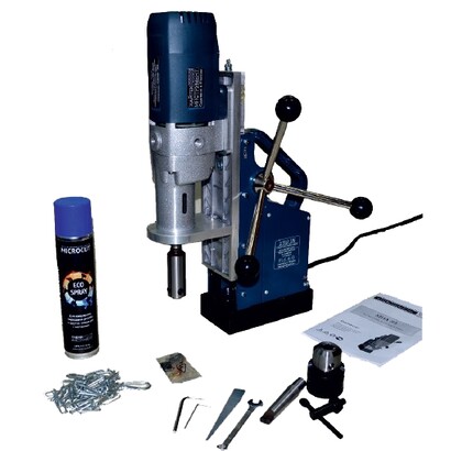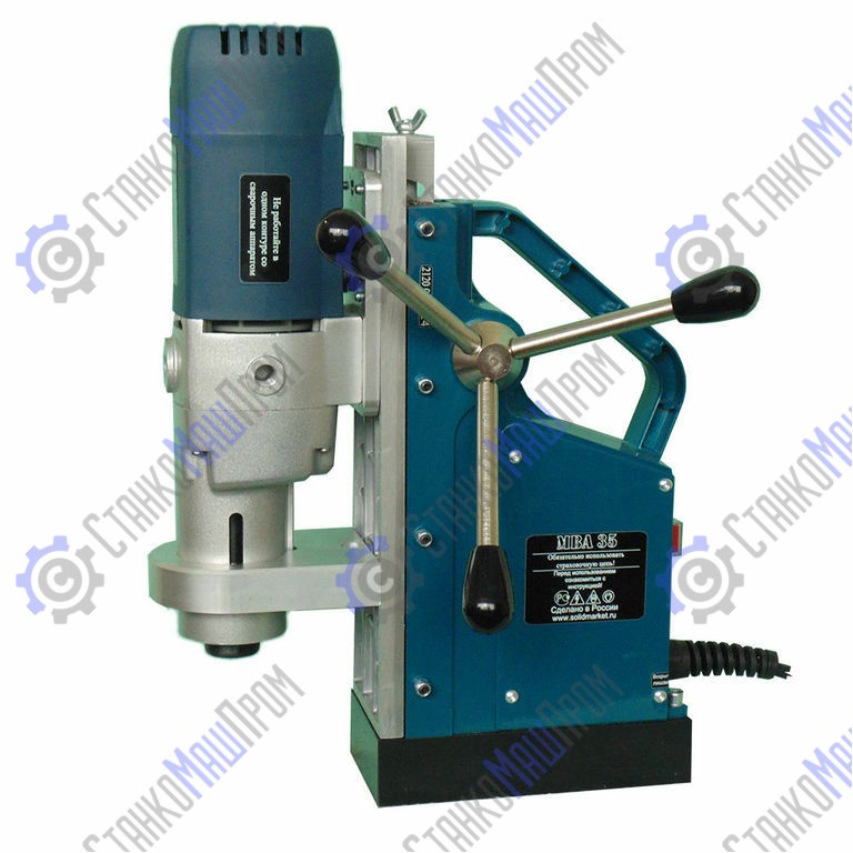 Переносной магнитный станок МВА-35 отвечает главным запросам профессионалов: сверлит отверстия коронкой до 35 мм, спиральными сверлами до 16 мм. Работает при температуре от -30 до +40 градусов. Имеет в комплекте все, что необходимо для начала работы, кроме, разве что самих сверл.