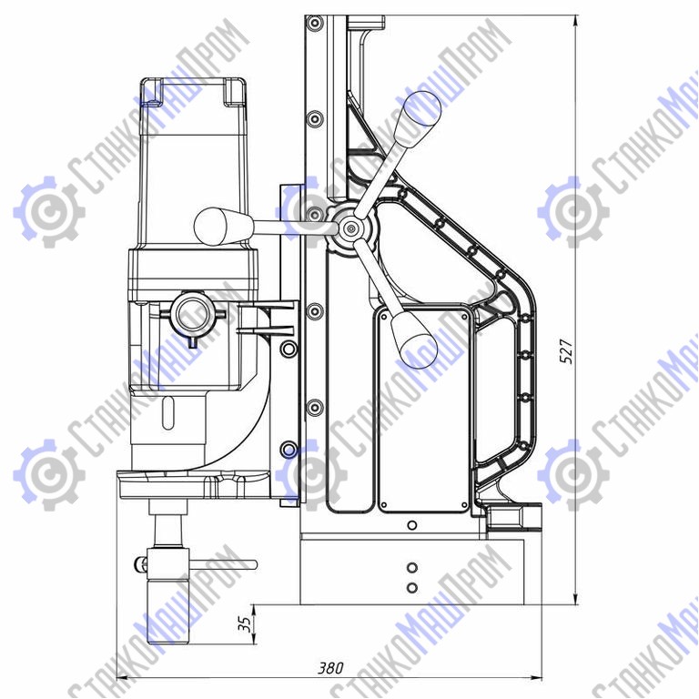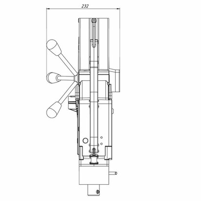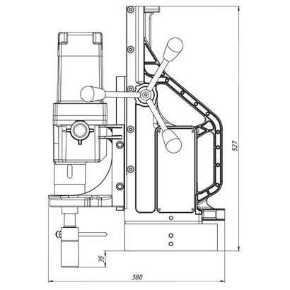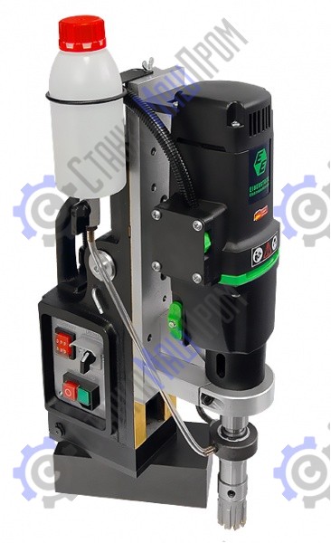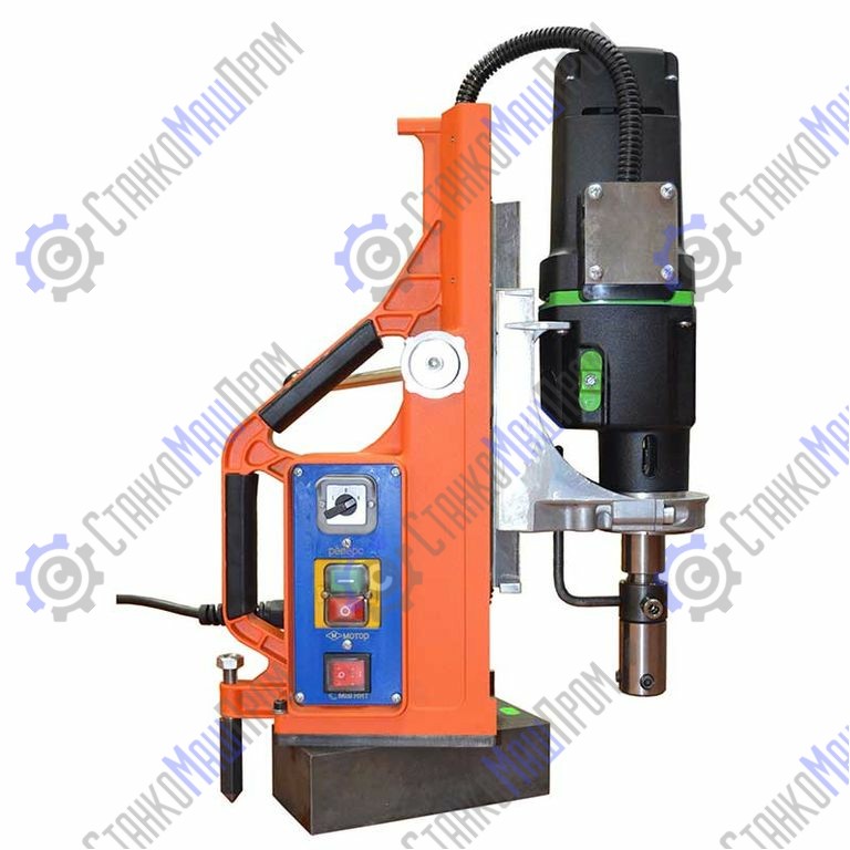 Сверлильно-резьбонарезной станок на электромагнитном штативе MBSR-100 обладает не только мощным приводом с плавным пуском и двухскоростной коробкой передач, но и подвижным магнитным основанием для точной настройки положения оси сверления в труднодоступных и неудобных местах. Главной особенностью данной модели, отличающей её от похожих станков, как нашего, так и зарубежного производства, назовем наличие двойных направляющих типа ласточкин хвост. Это позволяет расширить доступный диапазон хода сверла до немыслимых прежде 320 мм. Все это при сохранении компактных размеров и сравнительно небольшой массы.