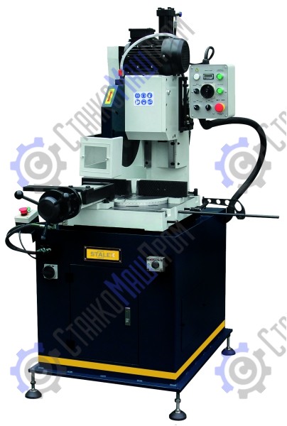 Пильный диск, имеет две скорости вращения: 18 и 36 об/мин, для удобства обработки различных профильных заготовок. Прочная массивная станина со встроенным баком для СОЖ, обеспечивает жeсткость конструкции и сводит к минимуму вибрации при резке заготовки.