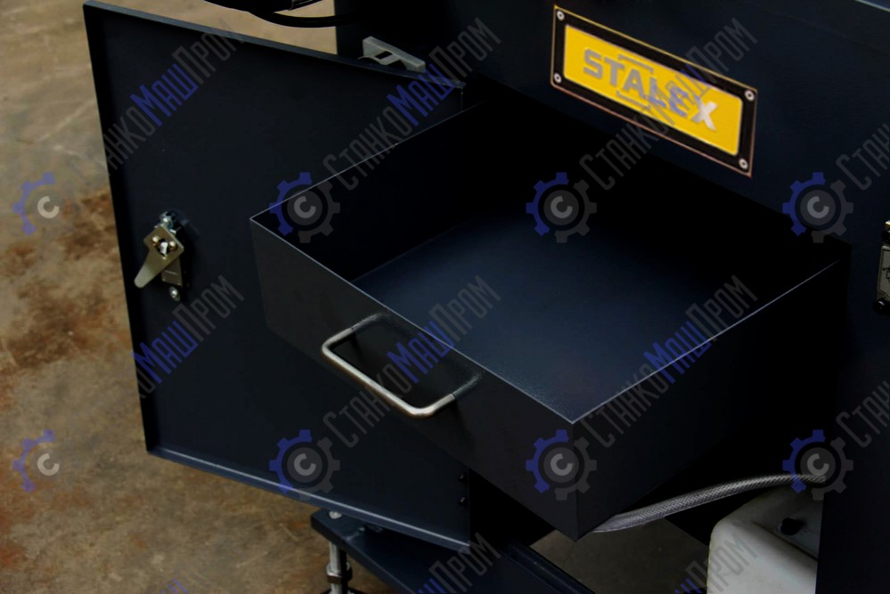 - Устойчивая стальная тумба с баком СОЖ и гидравликой