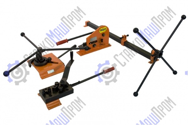 Предназначен для изготовления декоративных металлических изделий для дома, сада или бизнеса. Изготовление вешалок для растений, канделябров, кабельных лотков и элементов ограды из низкоуглеродистой полосовой стали. В конструкцию входит формовщик, гибочное устройство и закручиватель.