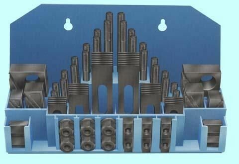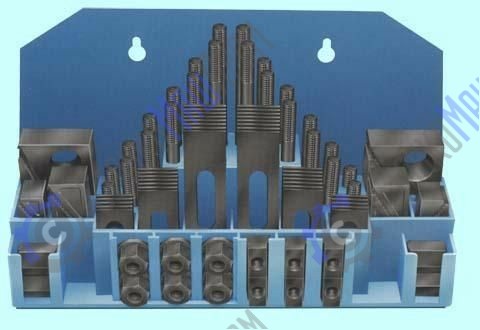 Набор клиновых ступенчатых прижимов из 58-ми предм., паз 21,7мм M20x2,5 на пласт. подст. (YT-0212)