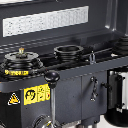 E-1516B/230 оснащён функциями поворота, подъёма и наклона стола, а также поворота шпиндельной головки на колонне. Это обеспечивает удобство работы и расширяет возможности станка.