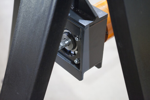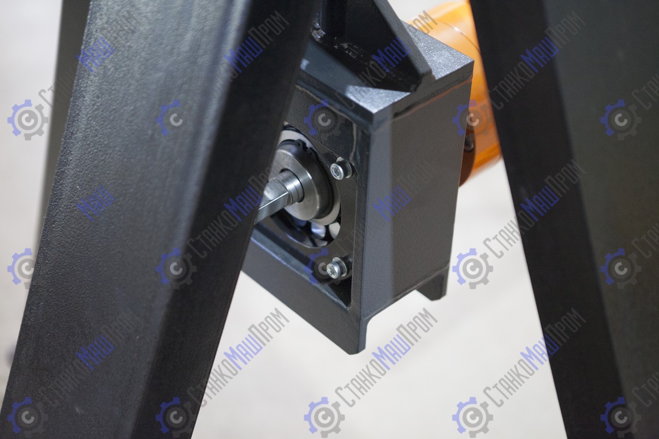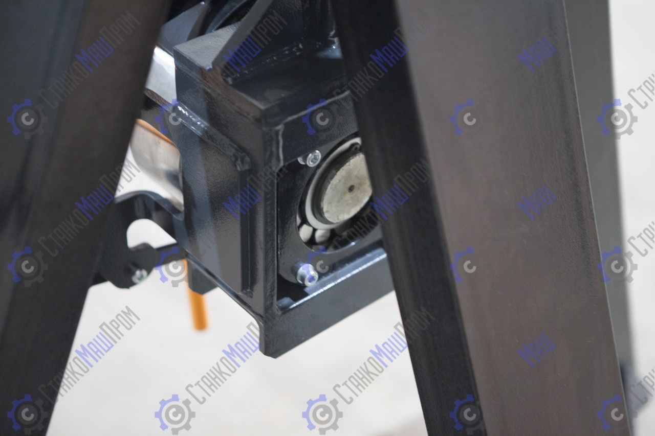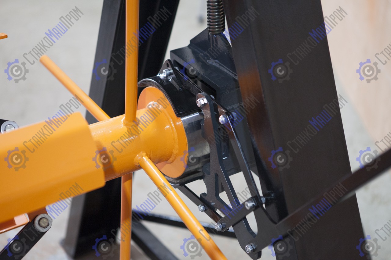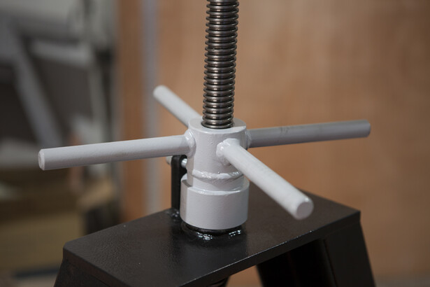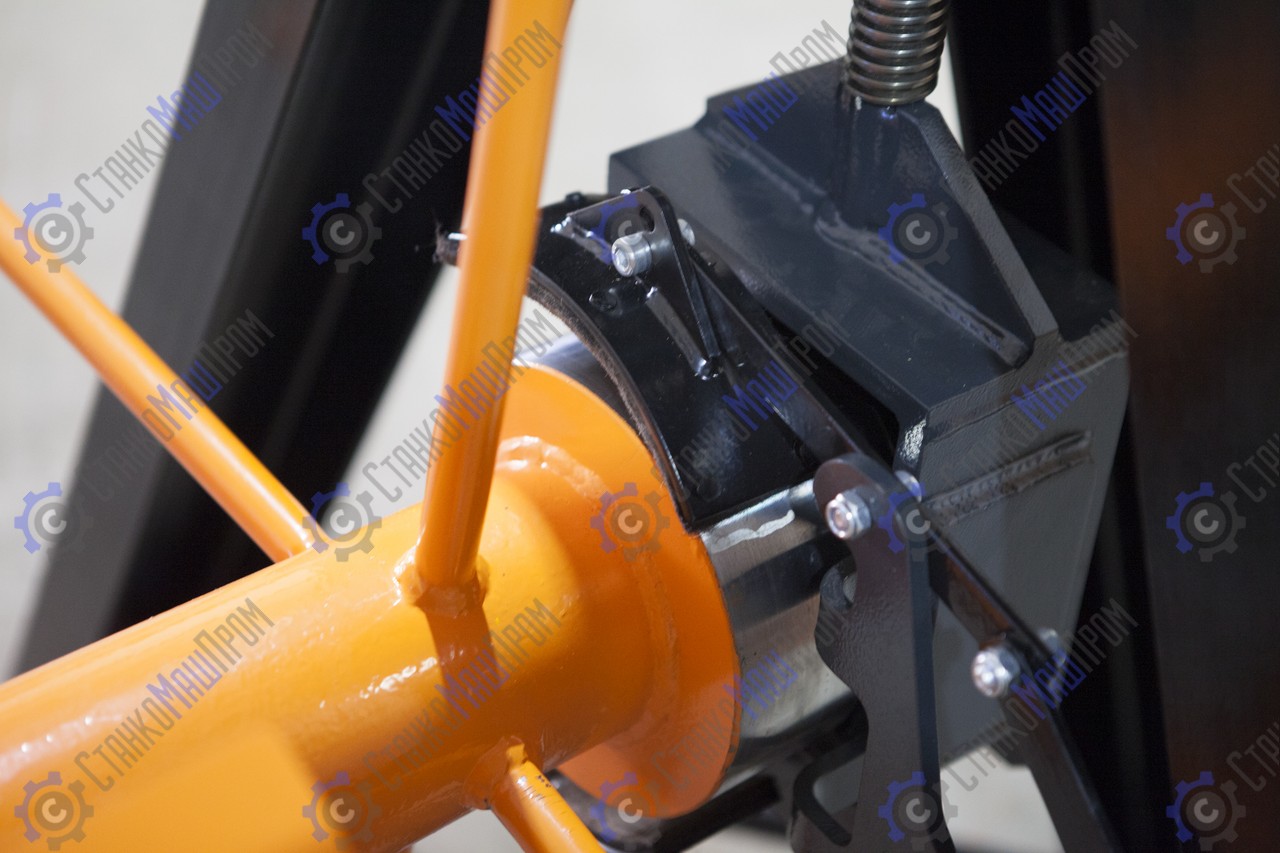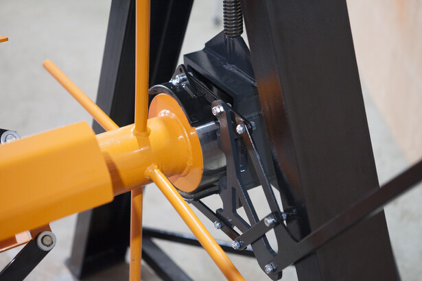 При вращении приводной рукоятки вала происходит синхронный разжим четырёх лепестков с одновременным самоцентрированием вала в рулоне. Время работы займёт 1 минуту (это легкая, быстрая и точная фиксация рулона). Далее поднести боковые опоры к валу и с помощью передачи винт-гайка на боковых опорах оторвать рулон от пола. Самоподъемный механизм позволяет использовать размотчик как на промышленных объектах, так и на небольших строительных площадках, где нет дополнительных подъемных устройств. На всех размотчиках Stalex RDL PRO-1250 установлен эффективный фрикционный тормоз.