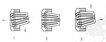 1. Вложите цангу в гайку под углом и проверните, слегка прижимая к гайке, до зацепления паза за эксцентриковый выступ.