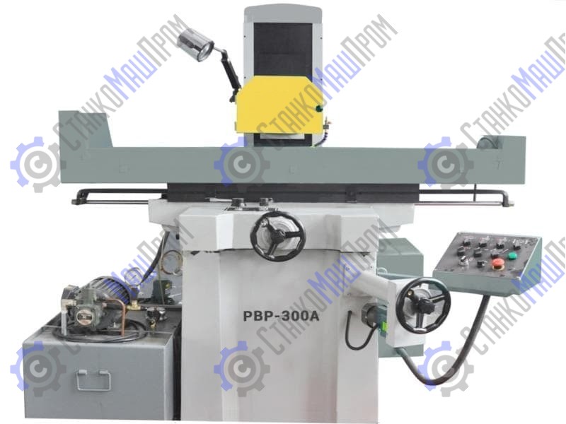 Плоскошлифовальный станок PBP-300A позволяет обрабатывать поверхность заготовок размером 630х310х390 мм. Плавное перемещение рабочего стола (продольное) осуществляется со скоростью от 3 до 20 м/мин благодаря салазкам V-образного типа с шариками. Продольное и поперечное перемещение стола выполняется в автоматическом режиме. За вращение шпинделя отвечает отдельный двигатель мощностью 2200 Вт. Насос СОЖ потребляет 400 Вт. Мощность гидростанции составляет 1500 Вт (создается стабильное рабочее давление 4 мПа, максимальная производительность достигает 20 л/мин). Станок оснащается баком объемом 100 л для хранения технических жидкостей.