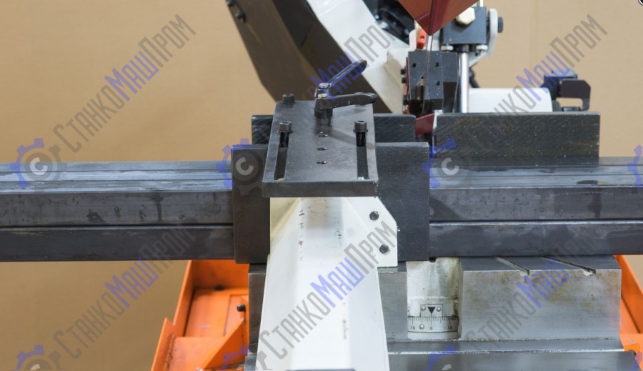 Прижим для пакетной резки, является дополнительной верхней (третьей) губкой тисков. Предназначен для прижима (крепления) заготовок в тисках сверху, при пилении в станке более одной заготовки одновременно. Устанавливается при помощи засверливания на тиски (вертикальные губки тисков) и стягиванием болтами. Прижим заготовок (пакета) происходит при помощи ручного вращения (затягивания) ручек.