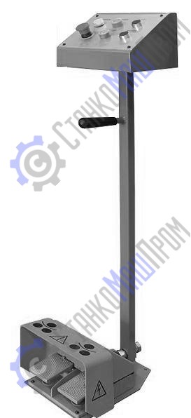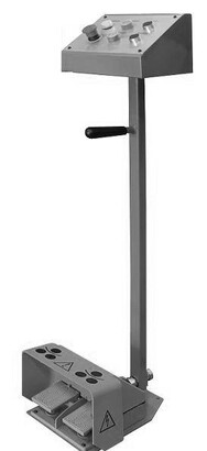 - Стойка управления с двумя ножными педалями и кнопкой аварийной остановки, снабжена удобной ручкой для переноски