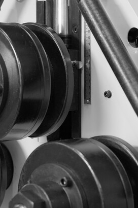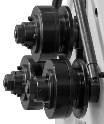 Мощный гидравлический трубогиб для гибки профильных труб, полосы, прутка. Крепкая устойчивая конструкция для длительного срока службы с 2-мя приводными нижними роликами и гидравлический привод верхнего вала. Простое управление, удобен в работе.