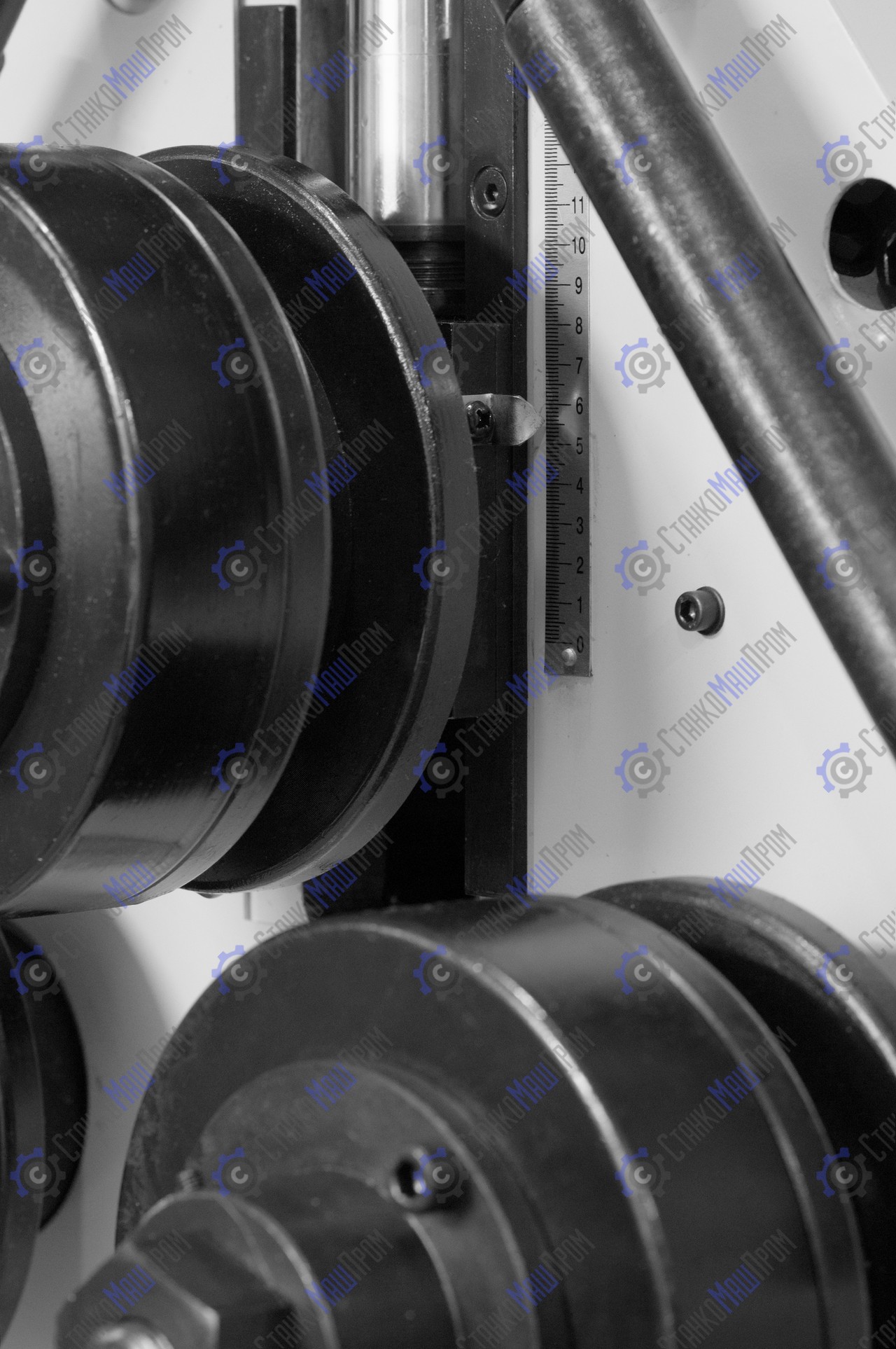 - Вдоль перемещения верхнего ролика на станке установлена шкала повторяемости