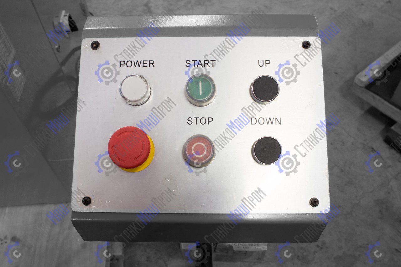 ![]() | Стойка управления с двумя ножными педалями и кнопкой аварийной остановки снабжена удобной ручкой для переноски. Переносной пульт станка имеет кнопки: