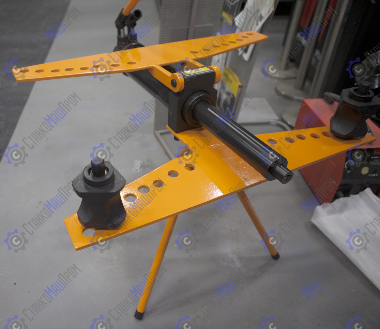 Тип станка – ручной гидравлический отличен от других вариантов ручных трубогибов тем, что его привод усилен гидравликой. Это позволяет монтажнику прикладывать меньше усилий при гибки стальных труб, и затрачивать на гибку гораздо меньше времени.