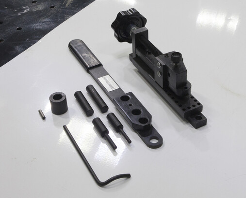 С помощью данного трубогиба можно создавать отверстия по центру, S-формы, изгибать петли, змеевики. Перед началом работы трубогиб необходимо закрепить с помощью верстака или Т-образного паза надежно зафиксированного станка.