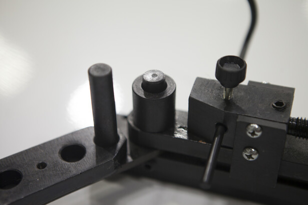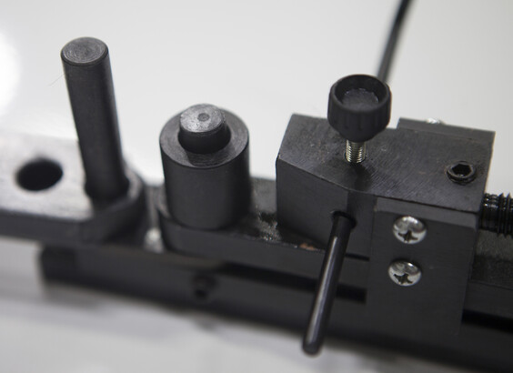 Для производства отверстий заготовка помещается между зажимом и валом. Чтобы изготовить параллельные изгибы она придерживается пальцем, после чего ручка поворачивается по часовой стрелке до полного оборота (360 градусов) заготовки.
