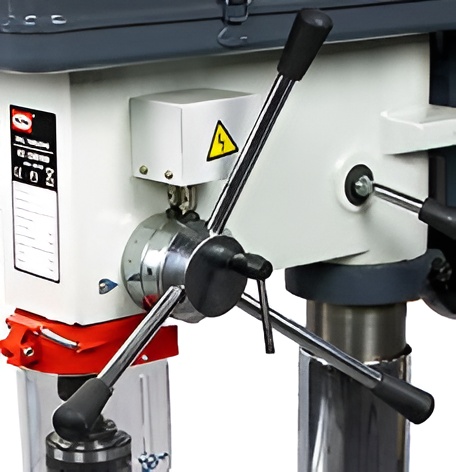 К основным особенностям представленного типа сверлильных станков можно отнести удлиненный ход шпинделя, а также наличие переключателя основных режимов (режим сверления — режим нарезания резьбы), который делает работу на станке более удобной. Кроме того, станок оснащен шестиполюсным электродвигателем повышенной мощности.