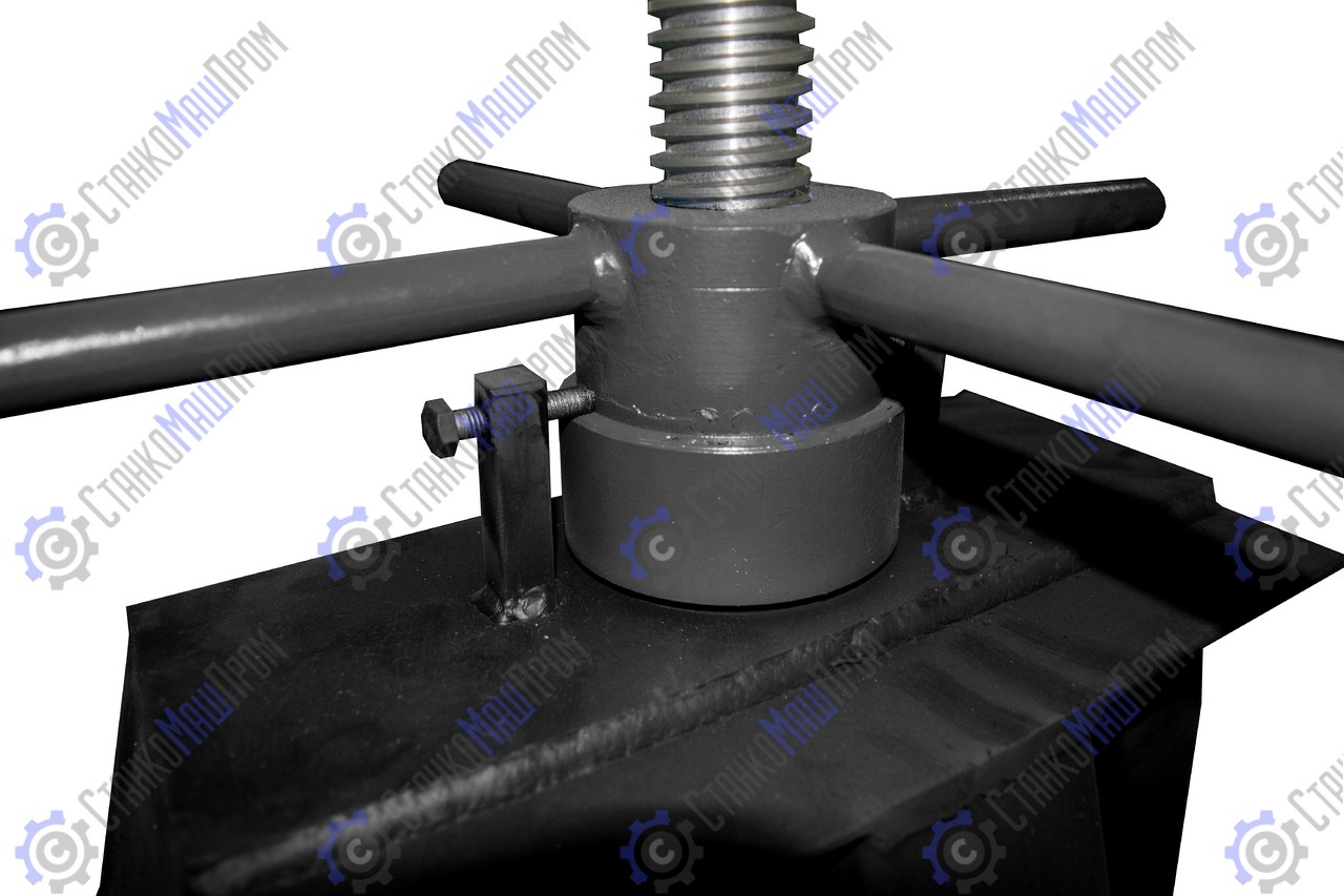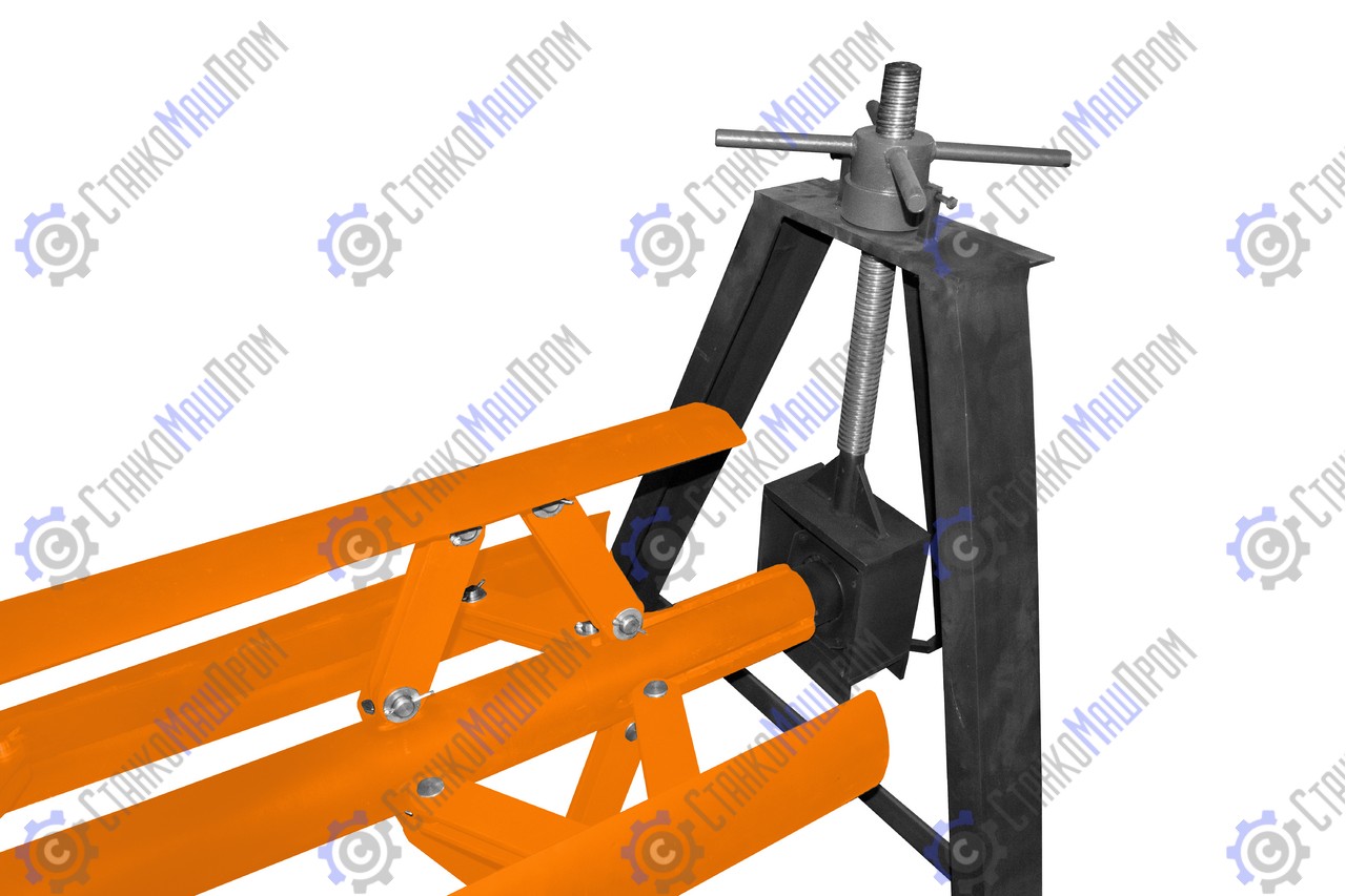 При вращении приводной рукоятки вала происходит синхронный разжим четырёх лепестков с одновременным самоцентрированием вала в рулоне. Время работы займёт 1 минуту (это легкая, быстрая и точная фиксация рулона). Далее поднести боковые опоры к валу и с помощью передачи винт-гайка на боковых опорах оторвать рулон от пола. Самоподъемный механизм позволяет использовать разматыватель как на промышленных объектах, так и на небольших строительных площадках, где нет дополнительных подъемных устройств. На всех разматывателях Stalex РМС-1250 установлен эффективный фрикционный тормоз.