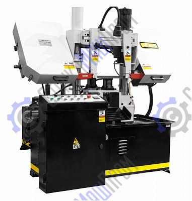 Двухстоечные ленточнопильные станки имеют 2 вертикальные стойки (колонны) большого диаметра, по которым вертикально перемещается горизонтальная пильная рама. Пильная рама, представляет собой стальную сварную конструкцию. На автоматических станках возможна работа как в ручном режиме, когда каждая операция выполняется вручную посредством нажатия соответствующей кнопки, так и в автоматическом режиме, когда станок выполняет весь цикл резания (зажим заготовки – подвод заготовки – запуск пилы – опускание рамы – остановка пилы – подъем рамы – отжим тисков). В последнем случае оператор должен лишь обеспечить подачу заготовок, предварительно настроить концевой ограничитель на необходимую длину получаемых заготовок и запустить цикл пиления кнопкой «Пуск».