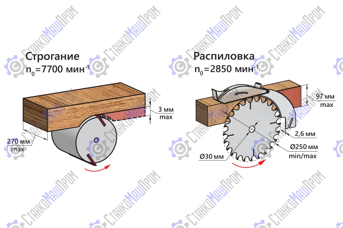| Максимальная ширина строгания, мм | 270 |