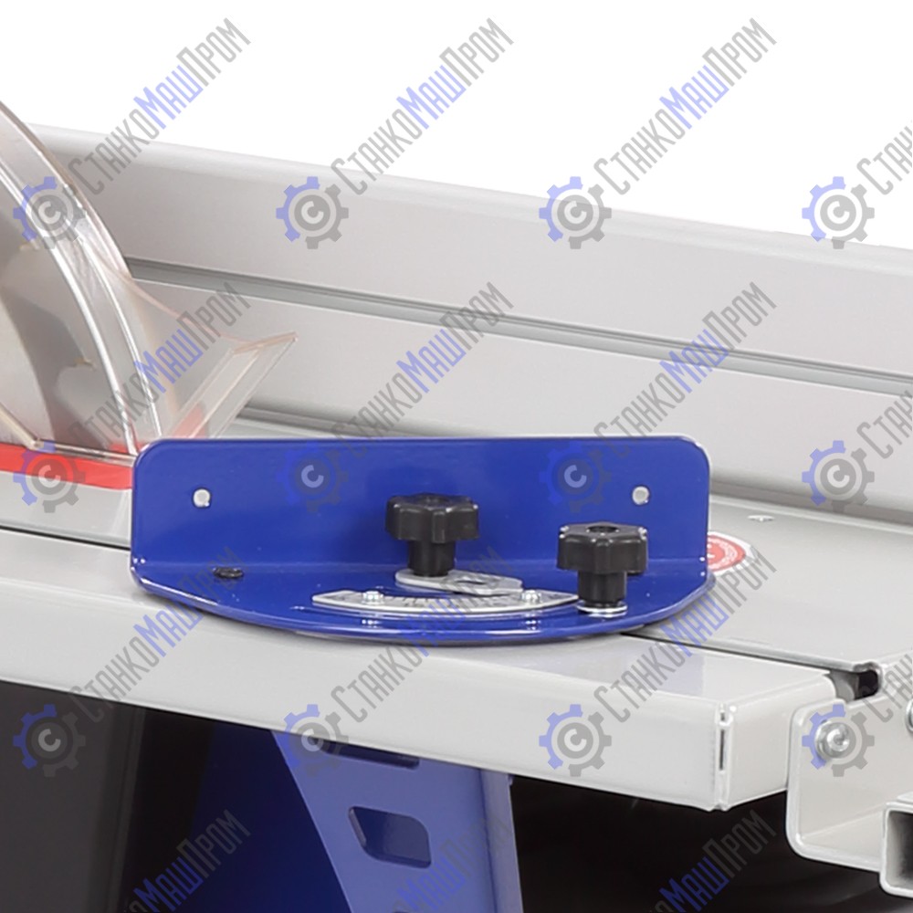 Для точного позиционирования заготовки при распиловке станок имеет угловой упор. Он устанавливается в специальный паз на пильном столе.