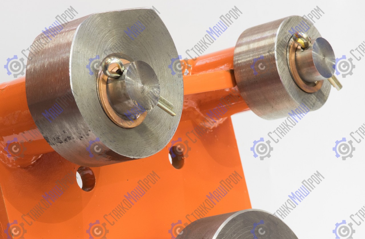 Гибка осуществляется за счет перемещения эксцентрика вокруг основного вала. Валы и эксцентрики взаимозаменяемы. В комплект входят два эксцентрика и два вала разных диаметров для жесткой фиксации и гибки прутков, полосы и арматуры разных размеров. Позволяют осуществлять гибы с высокой точностью и повторяемостью. Длина рычага (ручки) - 1200 мм.