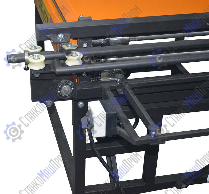 Для установки станка не требуется изготовления специального фундамента. Станок может быть установлен на жестком горизонтальном основании – бетонном покрытии, асфальте, межэтажном перекрытии. При этом необходимо, чтобы станок был установлен на все 4 опоры, «качание» станка не допускается. При необходимости, благодаря низкому расположению центра тяжести, станок может быть установлен прямо на кровле, под углом 0-30º к горизонту. Регулировка зазора происходит регулировочными винтами позволяя регулировать величину зазора в пределах 0.4-0.7 мм в зависимости от толщины металлической полосы.