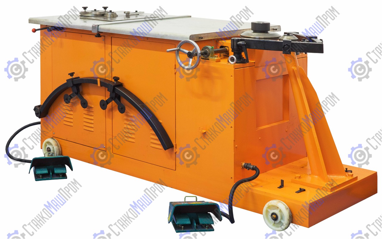Станок состоит из двух независимых рабочих зон: отбортовки (заготовительная) и завальцовки (сборочная). Прижим роликов производится вручную. Это позволяет работать на одном станке двум операторам одновременно, независимо друг от друга, что увеличивает производительность, и уменьшает затраты времени на обработку одной детали. Получаемые детали отличает жёсткость и легкость, благодаря стоячему фальцу, который образует плотный шов между сегментами.