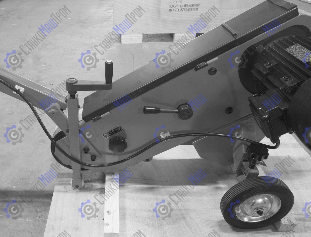 - Рычаг регулировки ограничения глубины шлифования, отвечающий за прижим ленты к шлифуемой поверхности