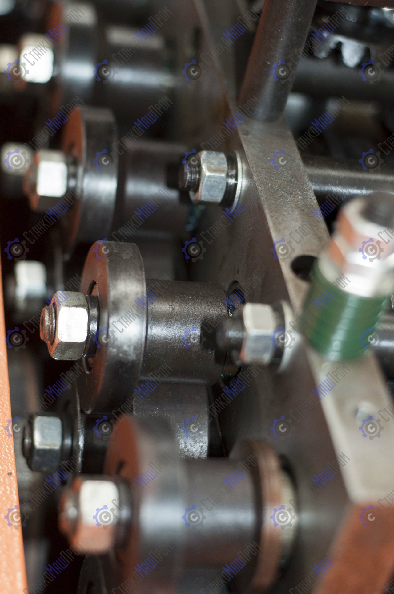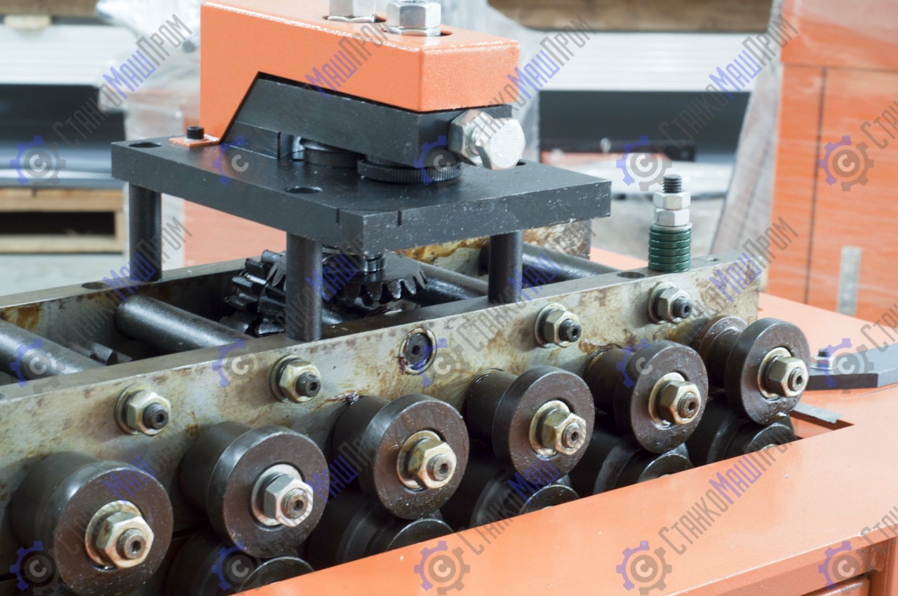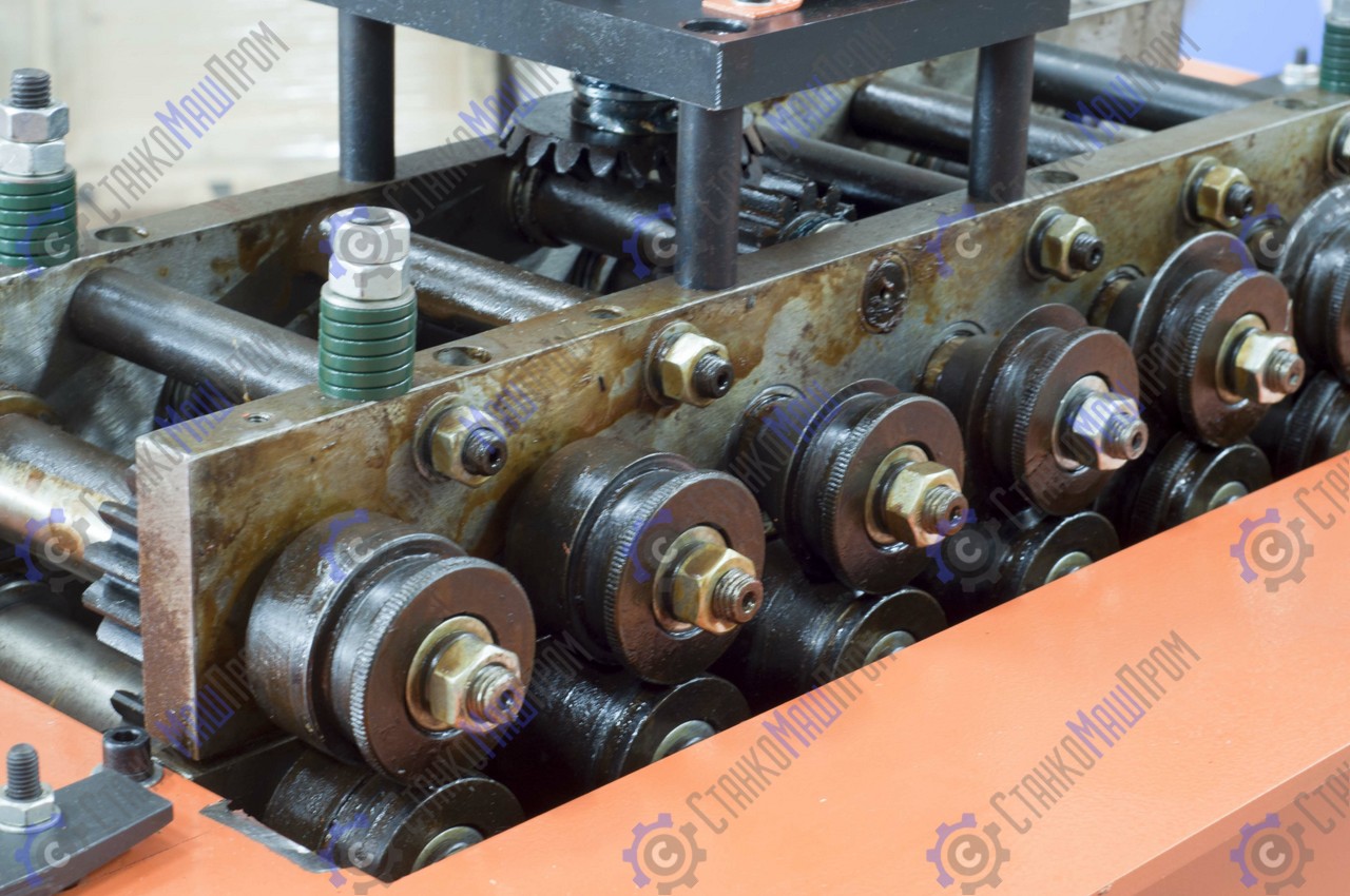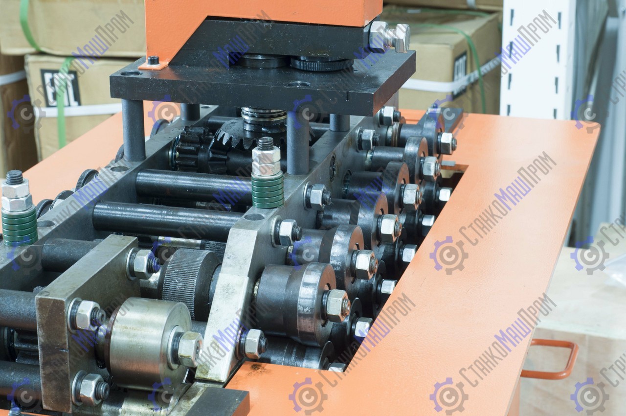 - Станок имеет возможность регулировки прижима материала по толщине – благодаря тарельчатым пружинным шайбам, размещённым в конструкции станка