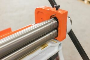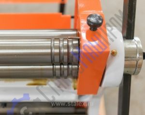 Вальцевание выполняется с диаметром от 90 мм. Вальцы имеют трёхваловую конструкцию, верхний вал консольно отводится в сторону для съёма обечайки. На вальцах станка расположены желоба для гибка арматуры. Вращение валов задаётся при помощи переносной ножной педали
