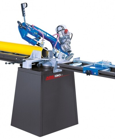 Портативная модель, предназначенная для использования при проведении строительных и монтажных работ, а также в условиях небольшого цехового производства. Для максимального облегчения конструкции, рама пилы и ее основание отлиты из алюминия. Зажимные тиски и приводные шкивы ленточной пилы изготовлены из серого чугуна, что в свою очередь обеспечивает долгий срок службы станка. Подача пилы, подъем рамы и крепление материалов (зажим тисков) осуществляется вручную. Особая конструкция поворотного устройства и рамы позволяет резать заготовки больших размеров как перпендикулярно, так и под заданным углом.