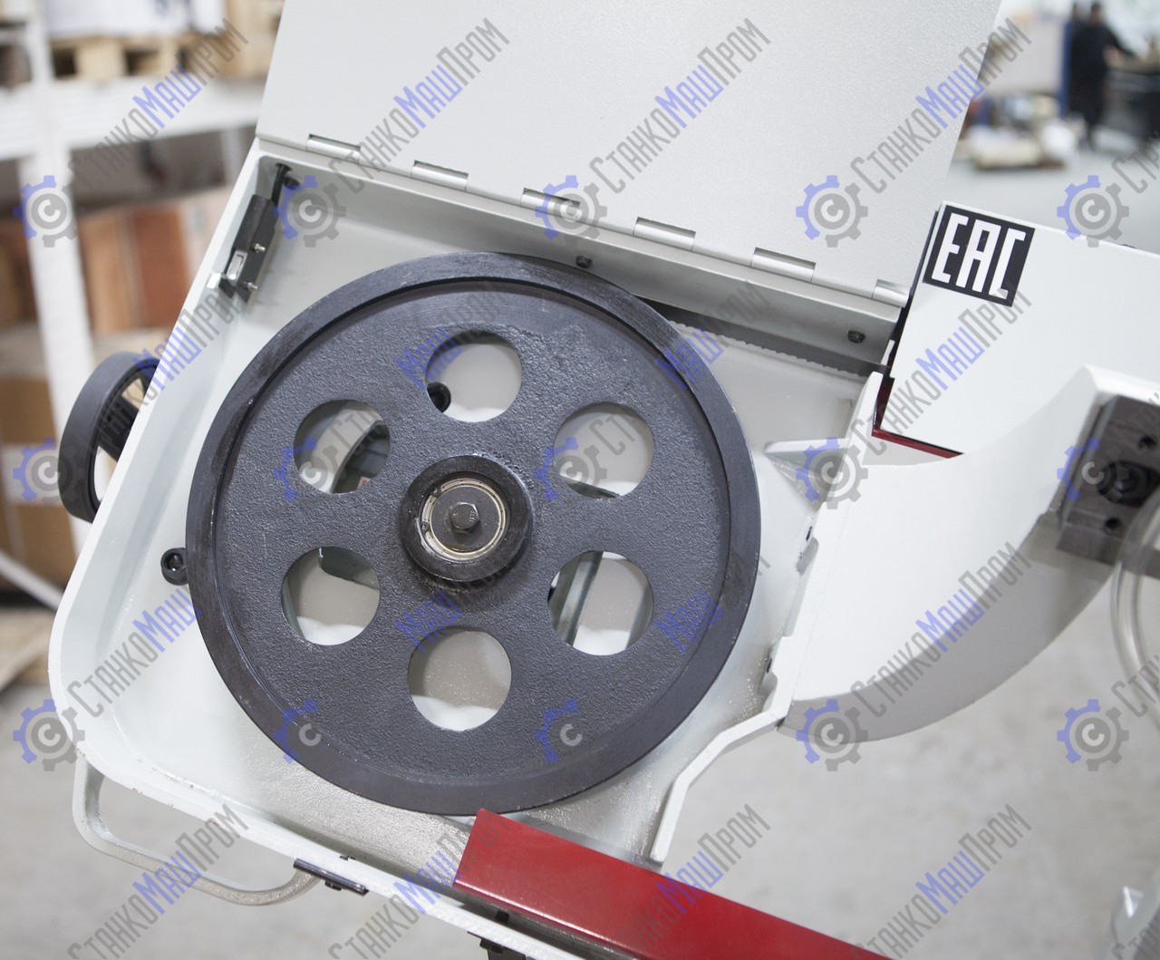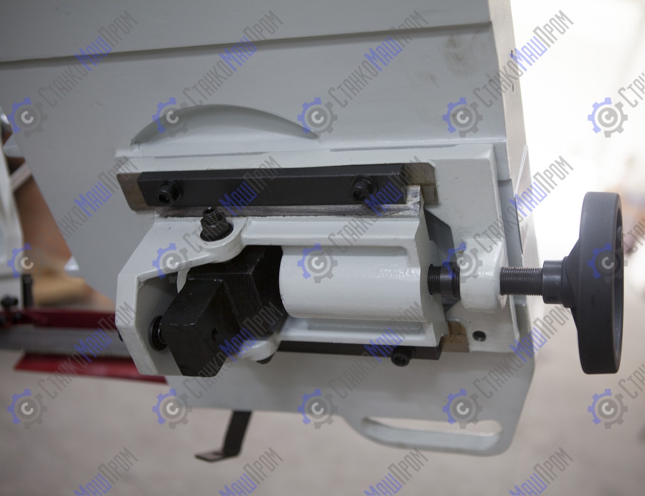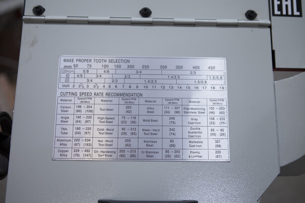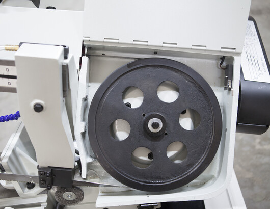 В рабочей зоне резания полотно точно ведется двумя направляющими головками. Станок имеет поворот губок тисков, для пиления под углом необходимо изменять угол установки тисков. Высота полотна 27мм позволяет пилить c высокой точностью и параллельностью полые и профильные заготовки под различными углами, в том числе и сплошные заготовки. Расстояние от пола до тисков составляет 580 мм.