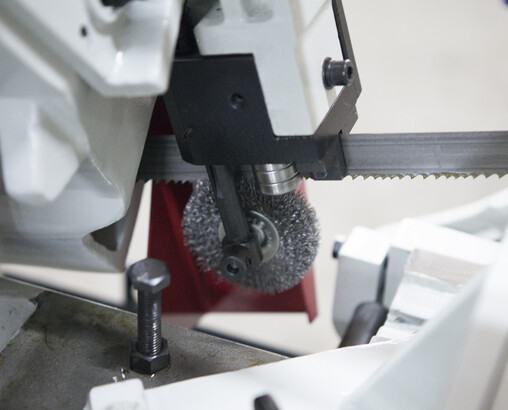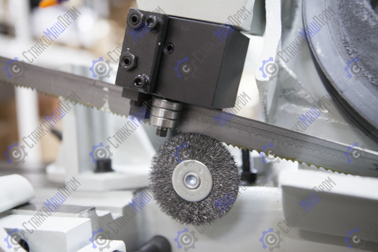 ![]() | Механическая дисковая щётка (приводимая в движение от движения полотна). Зубчатый блок, с твёрдосплавными платинами и подшипниками для выпрямления полотна в зоне резания и качественной фиксации для стабильного пиления. |