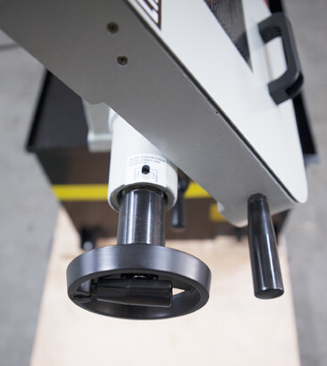 - Концевые выключатели при открытии крышек + регулируемый мерный упор для заготовок