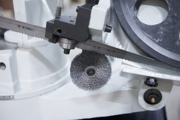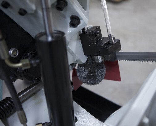 ![]() | Механическая дисковая щётка (приводимая в движение от движения полотна). Зубчатый блок, с твёрдосплавными платинами и подшипниками для выпрямления полотна в зоне резания и качественной фиксации для стабильного пиления. |